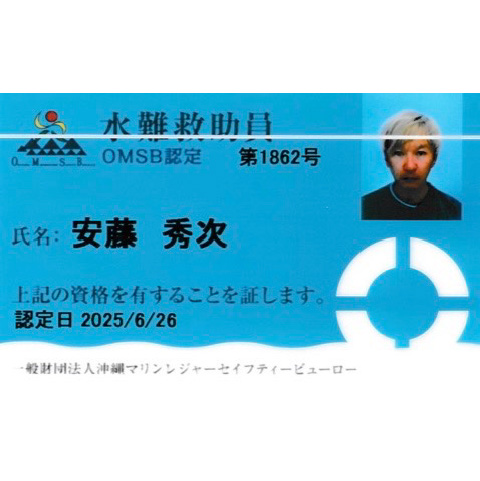 所持ライセンス・資格名 | 日本SUP協会認定インストラクター、PADIスノーケルガイド、OMSBスノーケリングガイド、赤十字水難救助員Ⅰ,Ⅱ、OMSB水難救助員、全米ヨガアライアンス協会認定(RYT200)、日本SUPヨガ協会認定インストラクター、Bliss Baby yoga マタニティーヨガTTC、キッズヨガ |