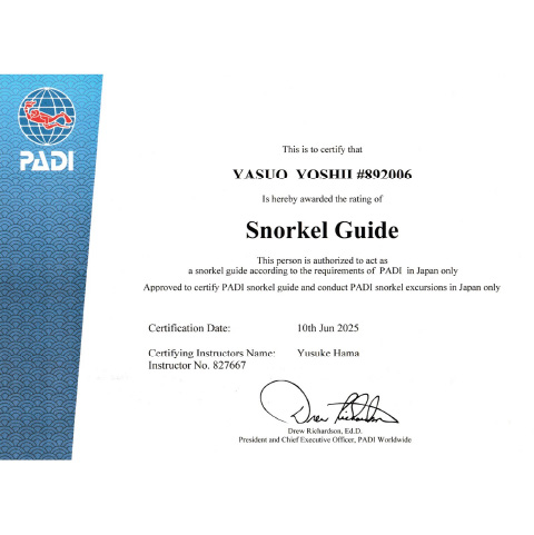 - ・沖縄県カヤック・カヌー協会公認ガイド