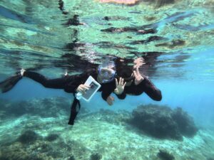 ウミガメが泳ぎ始めたら後ろからついてってみよう!!